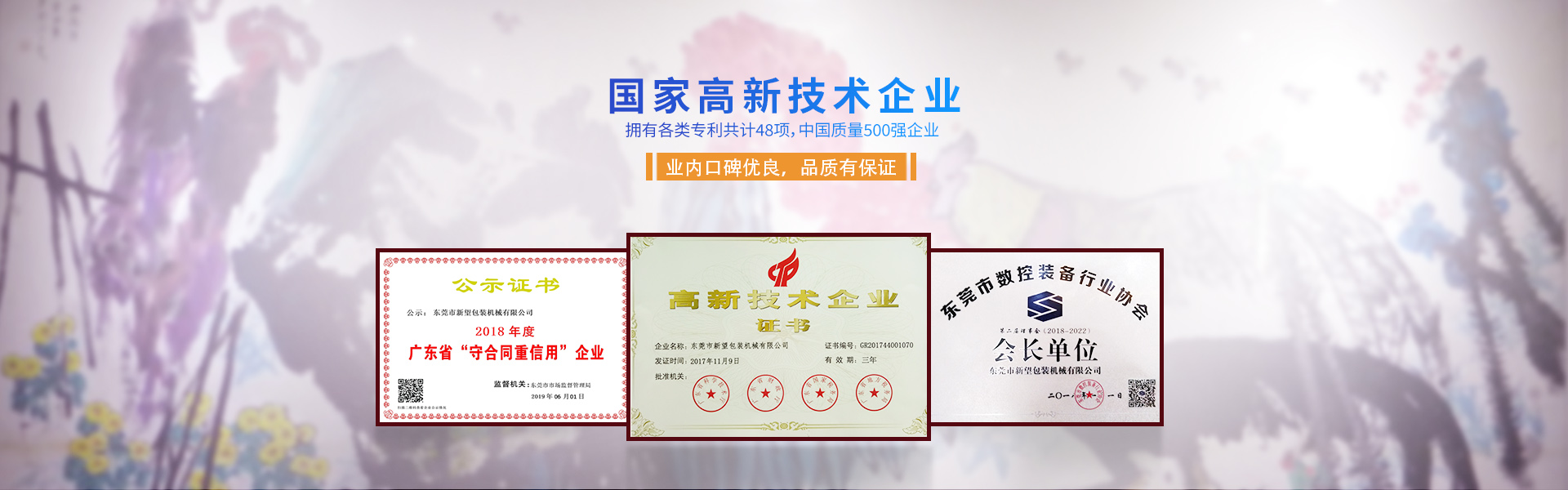 新望機械榮譽資質(zhì)